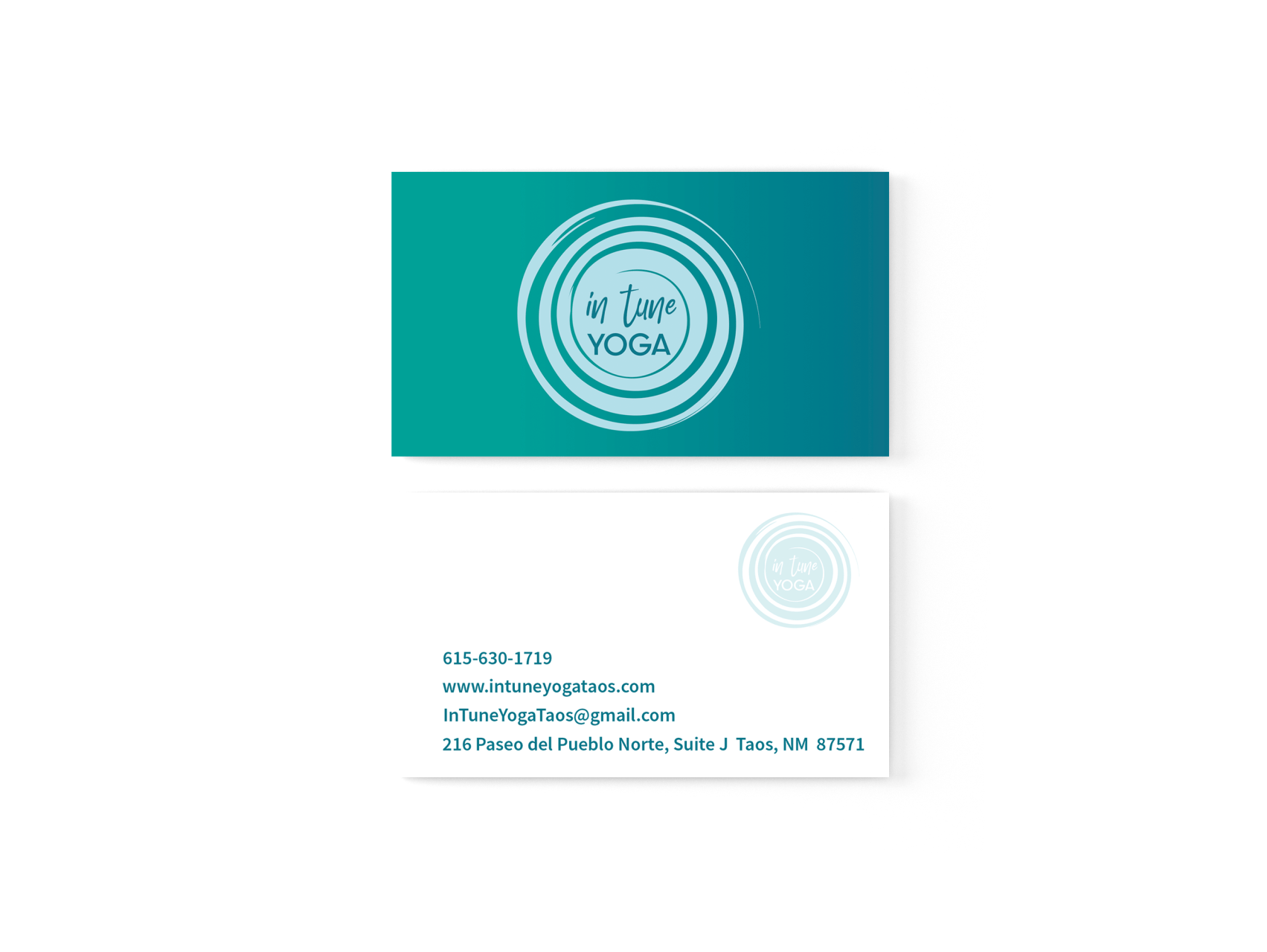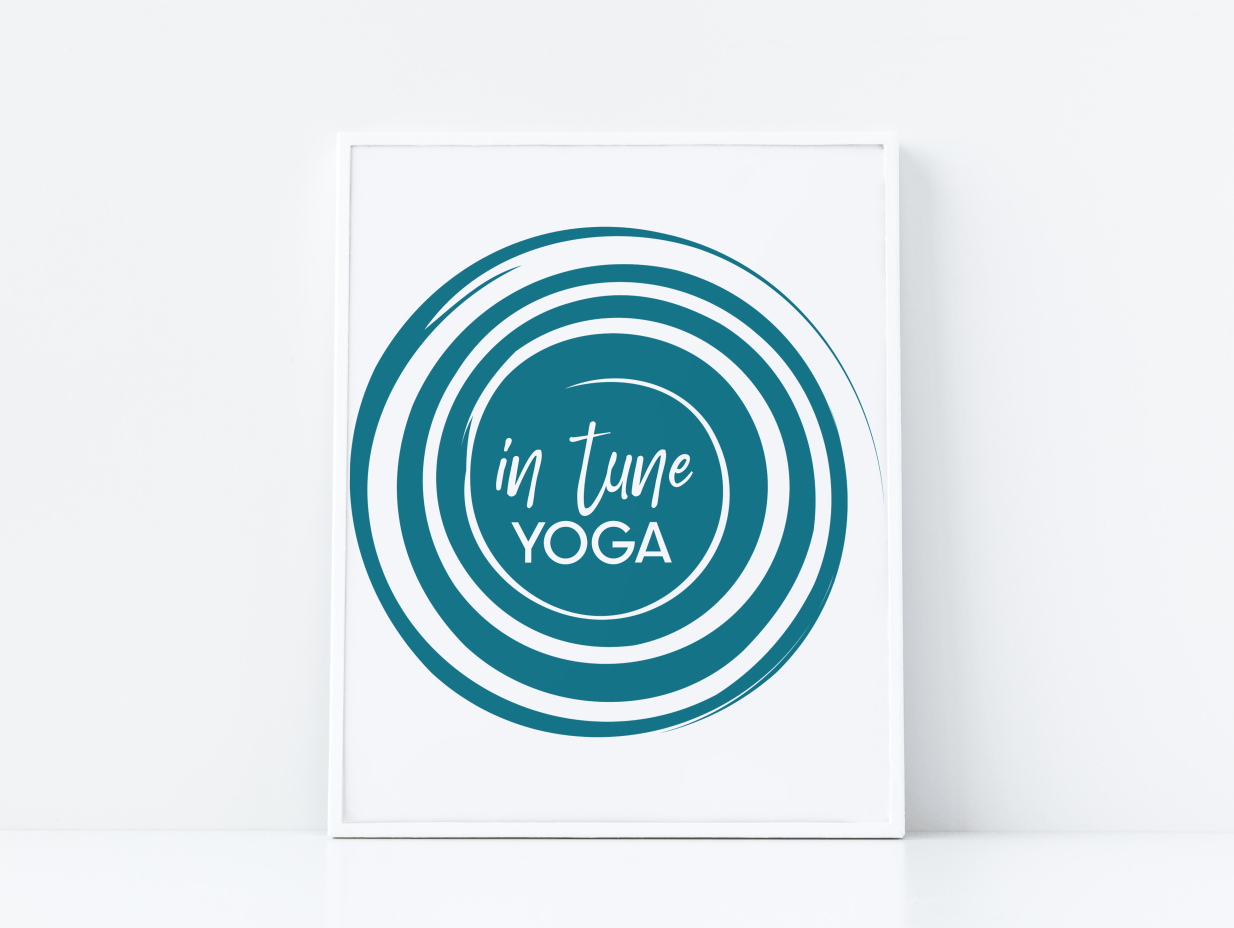 This is a simple logo that says both yoga and "in Tune". We made this shape to feel like a record moving and a rolled up yoga mat. It also has a kind of meditative, centered feeling. The client loved it !